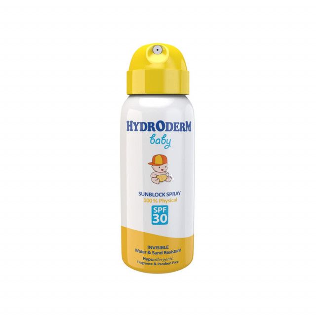 اسپری ضد آفتاب فیزیکال کودک هیدرودرم SPF 30 از پوست در برابر آسیب های ناشی از تابش نور خورشید محافظت کرده و با تامین رطوبت پوست، آن را التیام می بخشد. اسپری ضد آفتاب کودک هیدرودرم دارای SPF 30 و فیزیکال است و فاقد جاذب های شیمیایی می باشد. همچنین، این اسپری حس چسبندگی روی پوست ایجاد نکرده و موجب سوزش چشم نمی شود و به دلیل نداشتن پارابن و اسانس، بروز حساسیت در پوست کودکان را به حداقل می رساند.