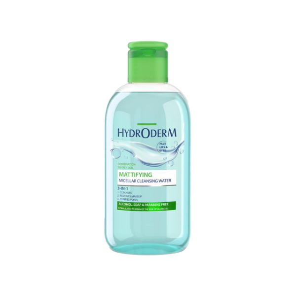 میسلار واتر هیدرودرم مدل Mattifying محصولی سه کاره است که ضمن پاک کردن آلودگی ها و لوازم آرایشی، پوست را مات کرده، سایز منافذ را کاهش داده و چربی اضافه آن را کنترل می کند. این محصول برای پوست های چرب، مختلط و جوش دار فرموله شده و در یک مرحله، مواد آرایشی، گرد و غبار و آلودگی ها را از روی پوست پاک خواهد کرد. میسلار واتر هیدرودرم فاقد الکل، پارابن و مواد صابونی بوده، برای صورت، چشم و لب قابل استفاده است و ضمن تقویت پوست، آن را با طراوت خواهد کرد.