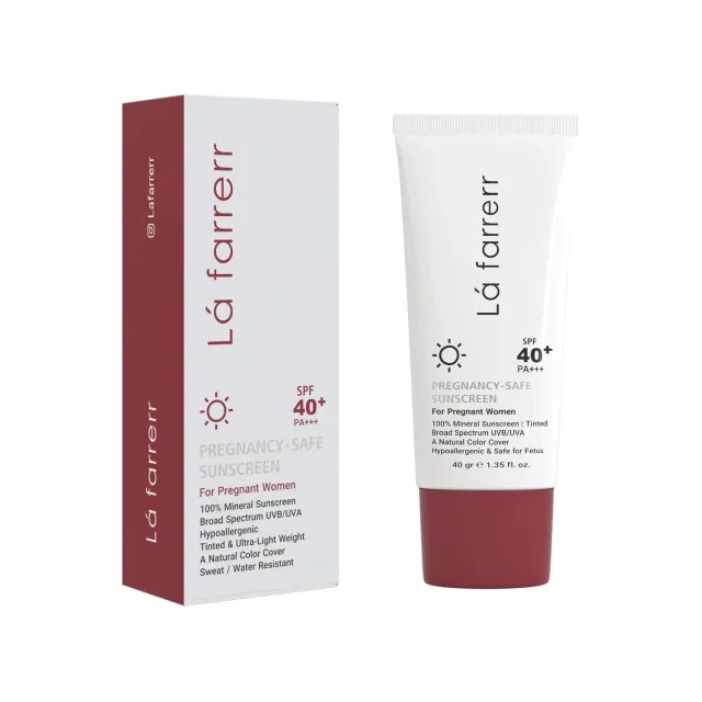 کرم ضد آفتاب بارداری SPF40 لافارر از پوست در مقابل اشعه UVA و UVB محافظت می کند و دارای فیلترهای فیزیکی و مینرال بوده و در کنار ماندگاری بالا و مقاومت در برابر تعریق و آب حاوی ترکیبات کنترل کننده چربی نیز است. این کرم ضدآفتاب حاوی عصاره های گیاهی بشقابی، شیرین بیان، بیربری، سارمنتوزا ساکسی فراگا، پاپایا و گواوا بوده و از بروز و گسترش لک های ناشی از نور خورشید مانند ملاسما جلوگیری می کند. از مهم ترین مزایای ضد آفتاب رنگی بارداری لافارر می توان به عدم وجود هرگونه فیلتر شیمیایی و ترکیب حساسیت زا و عدم ایجاد آسیب احتمالی به جنین اشاره کرد. این محصول همچنین جوانساز و غیرکومدوژنک بوده و با فرمولاسیون خاص خود به آسانی روی پوست پخش شده و رد سفیدی به جای نمی گذارد. این ضد آفتاب دارای رنگدانه های طبیعی با پوشش رنگی مطابق با هر تناژ پوستی است.