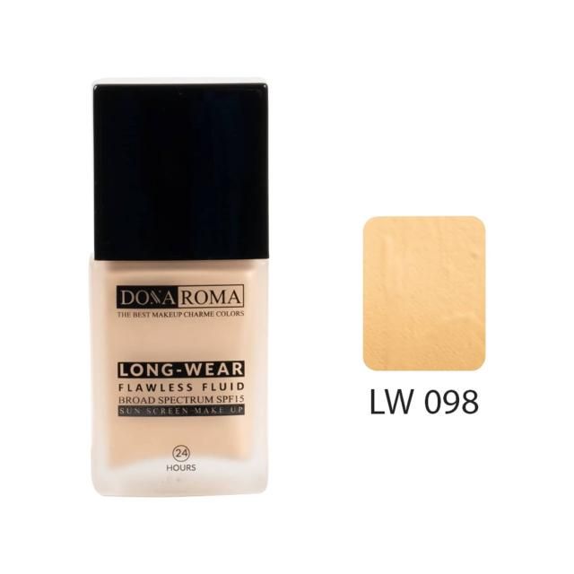 کرم پودر دونا روما مدل Long wear شماره LW098 برای انواع پوست مناسب بوده و پوشانندگی و ماندگاری بالایی دارد. این کرم پودر بافت سبکی داشته و پوششی مخملی و طبیعی روی پوست ایجاد می کند و در برابر رطوبت و تعریق مقاوم است. این محصول با داشتن SPF 15 از پوست در برابر اشعه مضر آفتاب محافظت کرده و احساس سنگینی و چسبندگی روی پوست ایجاد نمی کند.
