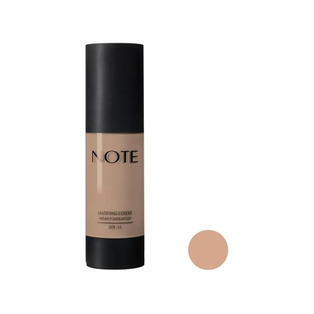 کرم پودر مات اکستریم نوت 10دارای بافتی نرم با پوشش دهی بالا و ماندگاری طولانی بوده و برای پوست های چرب، مختلط و مستعد آکنه مناسب است. این کرم پودر حاوی عصاره اسپیره، روغن سدر و ویتامین های گروه B ،A و F بوده و قرمزی ناشی از جوش، حساسیت و التهاب را از بین برده و آرامش بخش پوست است. همچنین فاقد ترکیبات کمدوژنیک بوده و مانع تجمع چربی در پوست شده و از ایجاد جوش و آکنه جلوگیری می کند. کرم پودر نوت نمای مات، طبیعی و ابریشمی روی پوست ایجاد کرده و با SPF15 از پوست در برابر اشعه های مضر نور خورشید محافظت می کند. با استفاده از این کرم پودر می توانید منافذ باز پوست، جوش، کک و مک، کبودی، لک های ناشی از آفتاب، افزایش سن، بارداری و پریدگی رنگ پوست را بپوشانید و پوستی صاف، هموار و یکدست داشته باشید.