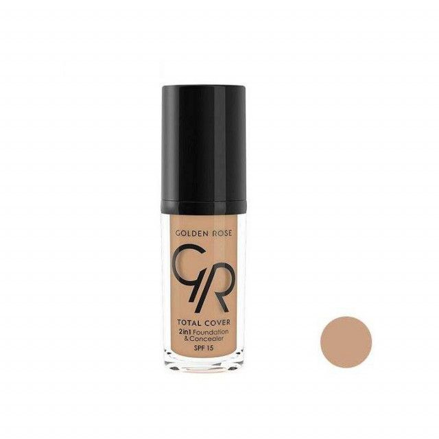 کرم پودر یکی از اصلی ترین مواد آرایشی است که هدف از استفاده آن یکنواخت کردن پوست و پوشاندن لک های پوستی می باشد. با استفاده از کرم پودر گلدن رز برای پوست چرب شماره 07 به راحتی می توانید جوش، لک و به طور کلی عیوب صورت را به خوبی بپوشانید. این کرم پودر گلدن رز قدرت پوشش بسیار بالایی دارد و نمای طبیعی روی پوست ایجاد می کند. کرم پودر گلدن رز مدل Total Cover مانند کانسیلر در یک مرحله استفاده، پوشش بسیار بالایی بر روی پوست دارد. فرمولاسیون این محصول بسیار سبک است و دارای SPF 15 بوده که پوست را در برابر اشعه های مضر آفتاب حفاظت می نماید. کرم پودر گلدن رز توتال کاور شماره 07 همچنین ماندگاری طولانی و دوام مناسبی روی پوست دارد. دارای ویتامین E است و فاقد چربی می باشد و برای استفاده پوست های معمولی، مختلط و چرب مناسب است.