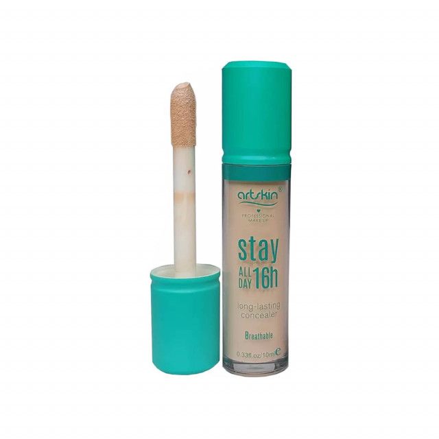 کانسیلر مایع آرت اسکین شماره 01، بافت سبک و رنگدانه های غنی داشته و با داشتن اپلیکاتور استاندارد، به راحتی روی پوست پخش شده و عیوب دور چشم نظیر لک، گودی و تیرگی را می پوشاند و موجب می شود تا آرایش شما یکدست و زیباتر به نظر برسد. این کانسیلر ماندگاری بالایی تا 16 ساعت روی پوست دور چشم دارد که این امر به جنس پوست و شرایط محیطی استفاده از آن وابسته است. کانسیلر سبز آرت اسکین برای استفاده روزانه یا آرایش های مجلسی و برای انواع پوست قابل استفاده می باشد.
