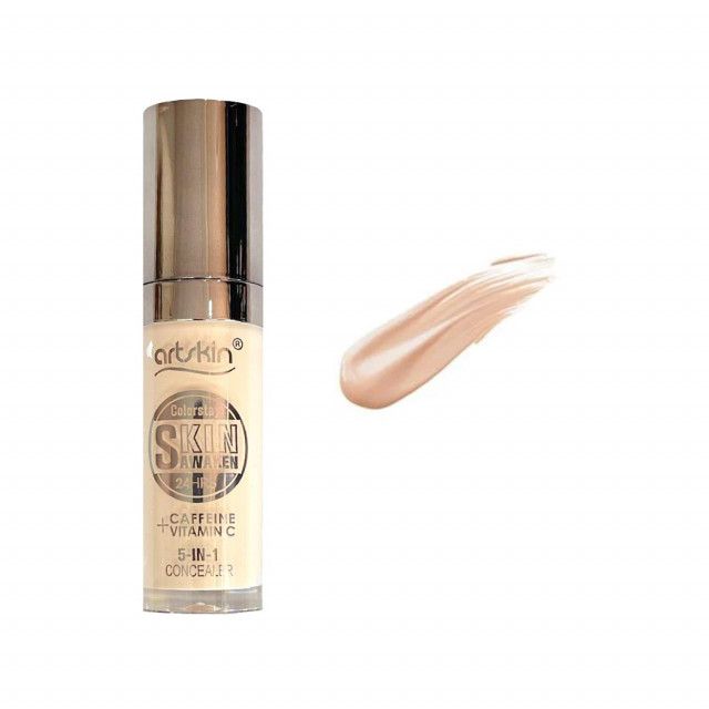 کانسیلر 5IN1 آرت اسکین مدل Skin Awaken شماره 03، حاوی رنگدانه های بسیار متراکم بوده و با کاور و پوشانندگی بالا، اصلاح کننده طبیعی رنگ پوست است و سیاهی و پف دور چشم را به خوبی پوشش می دهد. این کانسیلر حاوی کافئین و ویتامین سی بوده و دارای بافت سبک، نرم و فاقد چربی است که بدون ایجاد حس سنگینی روی پوست، موجب شادابی و رفع خستگی آن می شود. کانسیلر آرت اسکین برای انواع پوست مناسب بوده و با ایجاد جلوه ای مات و مخملی برای آرایش روزانه و مهمانی ها مناسب است.