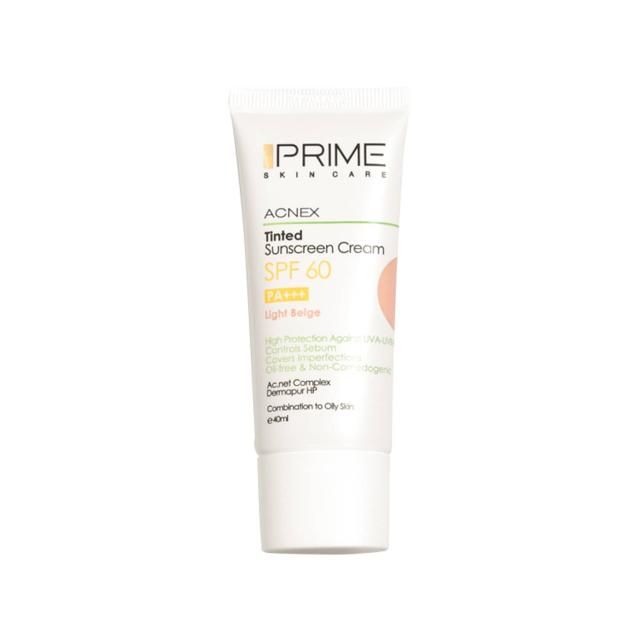 کرم ضد آفتاب پرایم بژ روشن مدل Acnex SPF 60 محصولی غیر جوش زا، سبک و فاقد چربی و پارابن بوده که ضمن محافظت از پوست در مقابل اشعه های مضر UVA ،UVB ،IR نور خورشید، ترشح چربی پوست را نیز کنترل نموده و ظاهری مات و یکنواخت به آن می بخشد. ضد آفتاب پرایم حاوی NDGA (نوردی هیدروگواریتیک اسید)، اولئانولیک اسید و عصاره گیاه اسپیره کوهی بوده و برای پوست های چرب و مستعد آکنه مناسب است. این کرم sunscreen با دارا بودن رنگ بژ روشن، لک های پوست و اسکارهای ناشی از آکنه را پوشش خواهد داد.