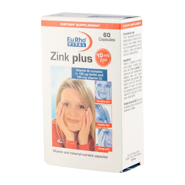 کپسول زینک پلاس یوروویتال ۱۰ میلیگرم بسته ۶۰ عددی، مکملی تحت لیسانس یورو او تی سی فارما آلمان و تولید شده در ایران است. این محصول ترکیبی از زینک به همراه ویتامین C، ویتامینهای گروه B، بیوتین و اسید فولیک را ارائه میدهد و بهگونهای طراحی شده تا علاوه بر تأمین نیاز روزانه بدن به روی، در بهبود عملکرد سیستم ایمنی، سلامت پوست، مو و ناخن، افزایش انرژی و ترمیم سریعتر زخمها نقش مؤثری داشته باشد.