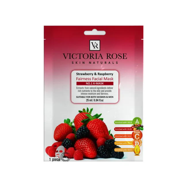 ماسک صورت تمشک و توت فرنگی ویکتوریا رز پوست را روشن و مرطوب کرده و کدری و خشکی آن را برطرف می کند. این ماسک صورت با سفت و صاف کردن پوست از آسیب و افتادگی آن جلوگیری می کند و با دارا بودن ویتامین های A ،B Complex ،C ،D و E، مواد مغذی مورد نیاز پوست را تامین می کند.