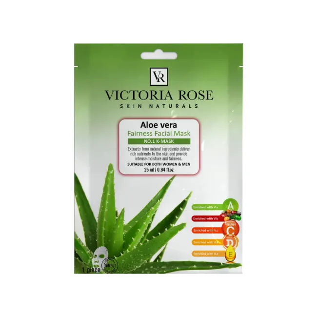ماسک صورت نقابی آلوئه ورا ویکتوریا رز دارای ویژگی های حاوی عصاره آلوئه ورا، آبرسان عمیق، ایجاد حس آرامش، ترمیم سلول های پوستی، استحکام بخش پوست می باشد.