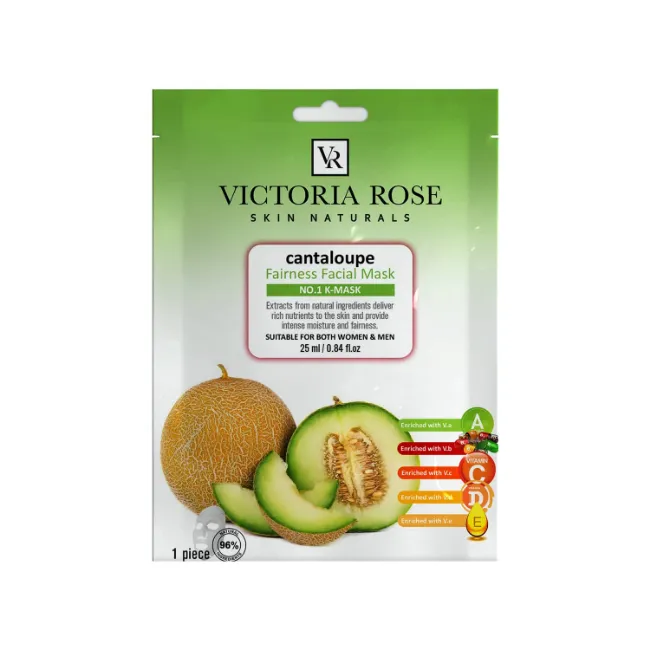 ماسک صورت نقابی طالبی ویکتوریا رز دارای ویژگی های حاوی عصاره طالبی، مناسب انواع پوست، آبرسان و مرطوب کننده، روشن کننده پوست می باشد.