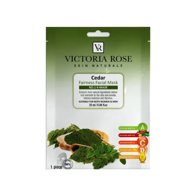 ماسک صورت نقابی سدر ویکتوریا رز دارای ویژگی های حاوی عصاره سدر، مناسب انواع پوست، آبرسان و مرطوب کننده، روشن کننده پوست می باشد.