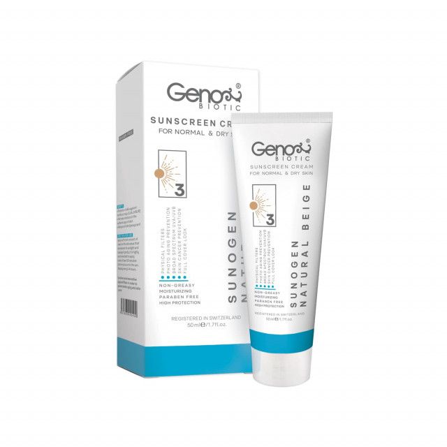 کرم ضد آفتاب ژنوبایوتیک مناسب پوستهای خشک و معمولی، محصولی با فرمولاسیون تخصصی و بافت سبک است که محافظت بالایی در برابر اشعههای UVA و UVB ارائه میدهد. این کرم ضد آفتاب با بهرهگیری از فیلترهای UV و ترکیبات گیاهی مؤثر، از بروز لک، التهاب و آسیبهای ناشی از نور خورشید جلوگیری میکند.