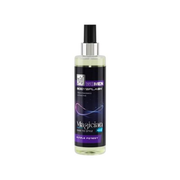 بادی اسپلش مجیشن پرپل فارست مای مناسب آقایان و بانوان بوده و با گروه بویایی آروماتیک، اسپایسی و چوبی، ضمن جلوگیری از تعریق، موجب رطوبت رسانی، خوشبو و شفاف شدن پوست بدن خواهد شد.